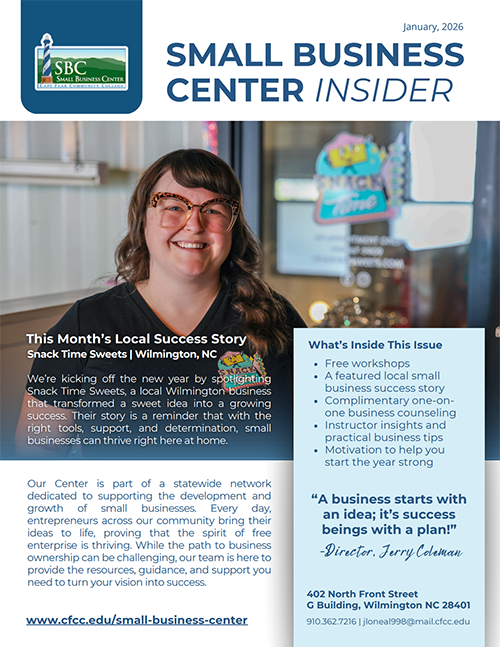 Small Business Center FAQsIn the video below, Jerry Coleman discusses CFCC’s Small Business Center offering, his experience owning his own consumer products manufacturing business, and pitfalls and best practices for entrepreneurs as they create their business plan.