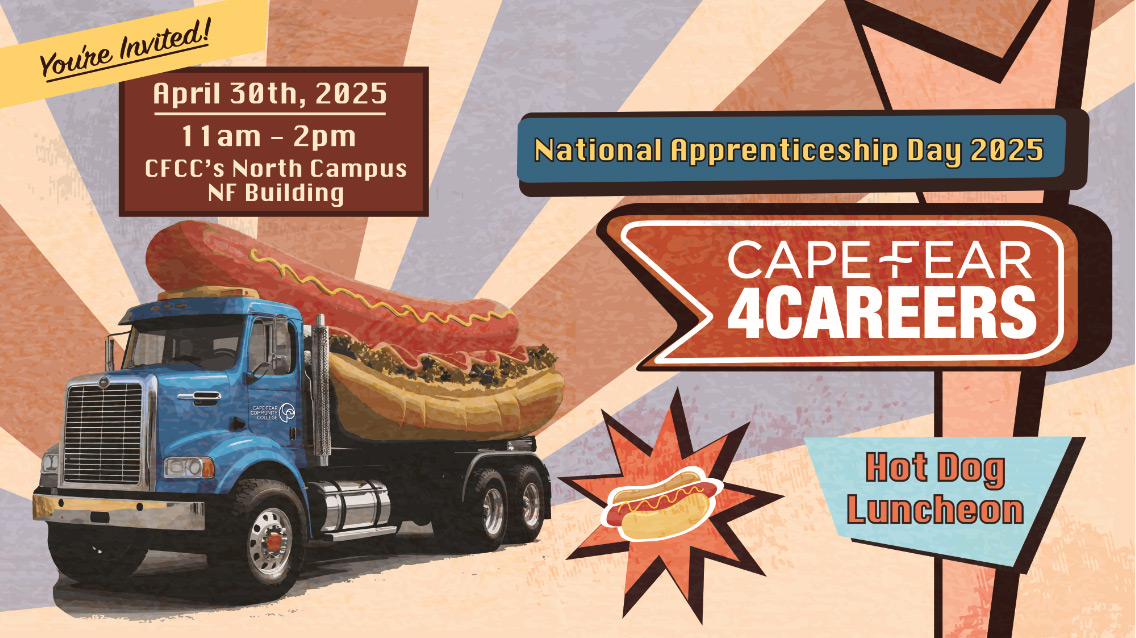 Wilmington, NC (April 22, 2025) – Cape Fear Community College will celebrate National Apprenticeship Week with the Cape Fear for Careers: National Apprenticeship Day 2025 event on Wednesday, April 30, from 11:00 a.m. to 2:00 p.m. The event will occur in and around the NF Building on CFCC’s North Campus (4500 Blue Clay Road, Castle Hayne, NC).